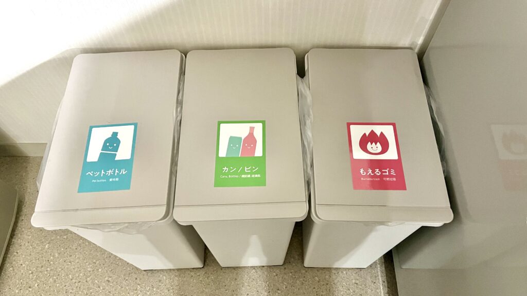 臭いが部屋に広まらないよう、蓋つきのゴミ箱が設置されています。