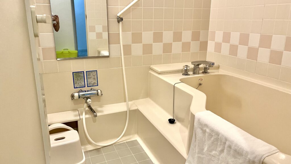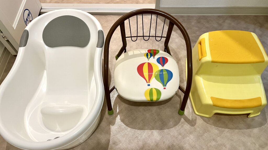 温泉は子連れOKですが、「お部屋でササっと済ませたい」という方はベビーバスを使ってあげられるので便利です。