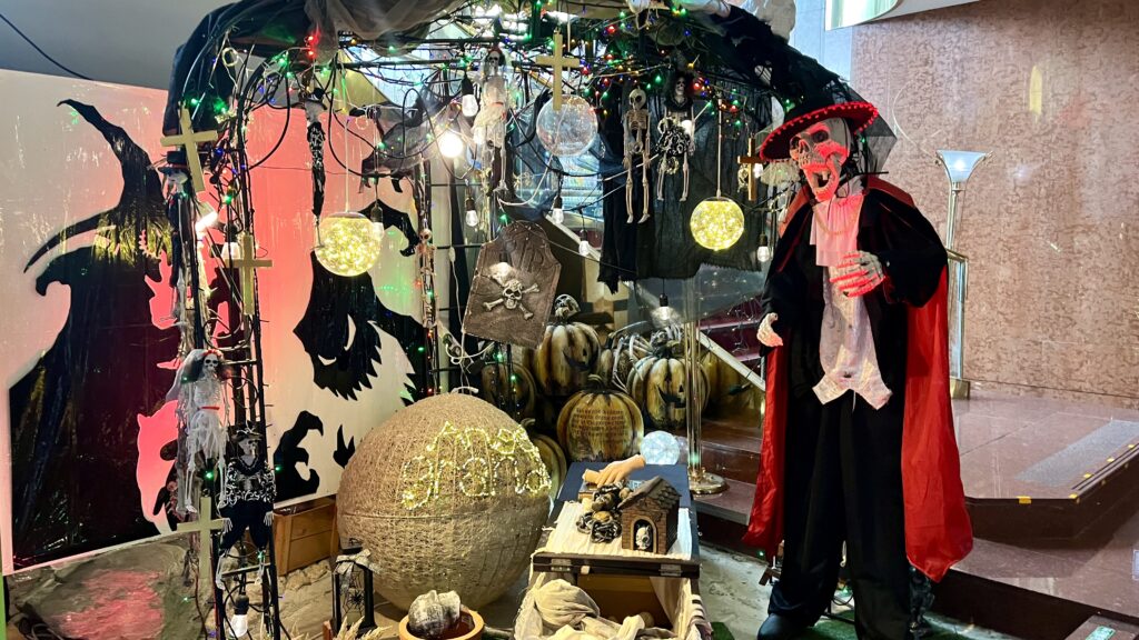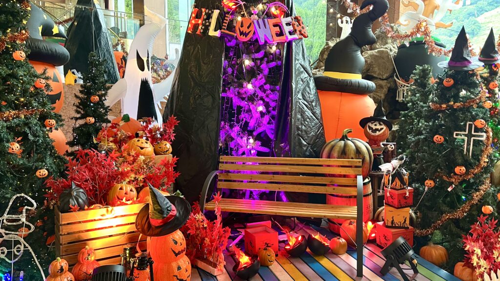 ホテルに入って少しあるくとハロウィンをテーマにした飾りつけがお出迎えしてくれました。