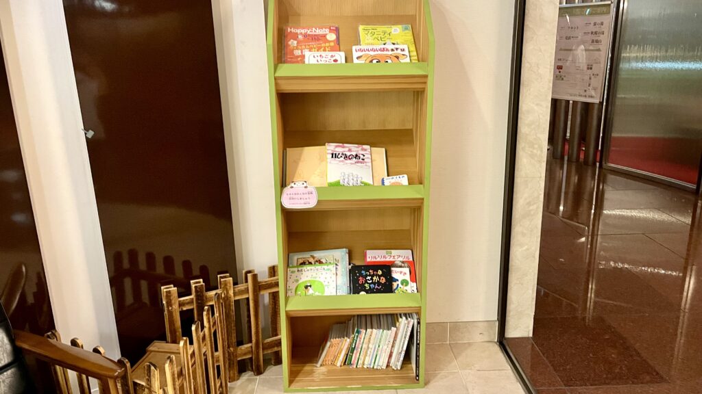 入り口には小さなテーブルや椅子があり、絵本を読めるスペースになっていました。