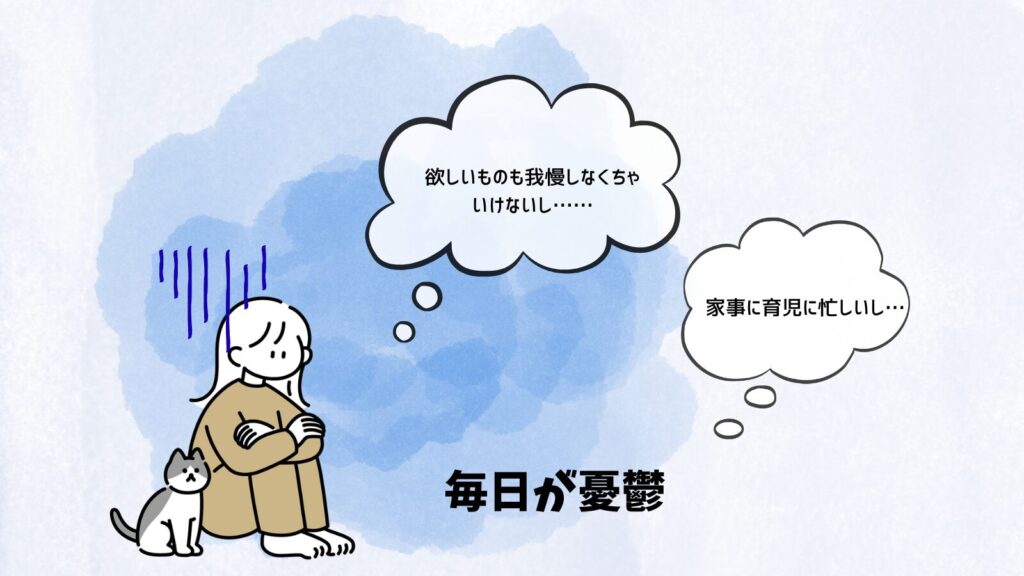 子育てに追われて自分の時間が取れず、たまにの息抜きで出掛けても自由に使えるお金がないため出掛けても楽しいことはありません。